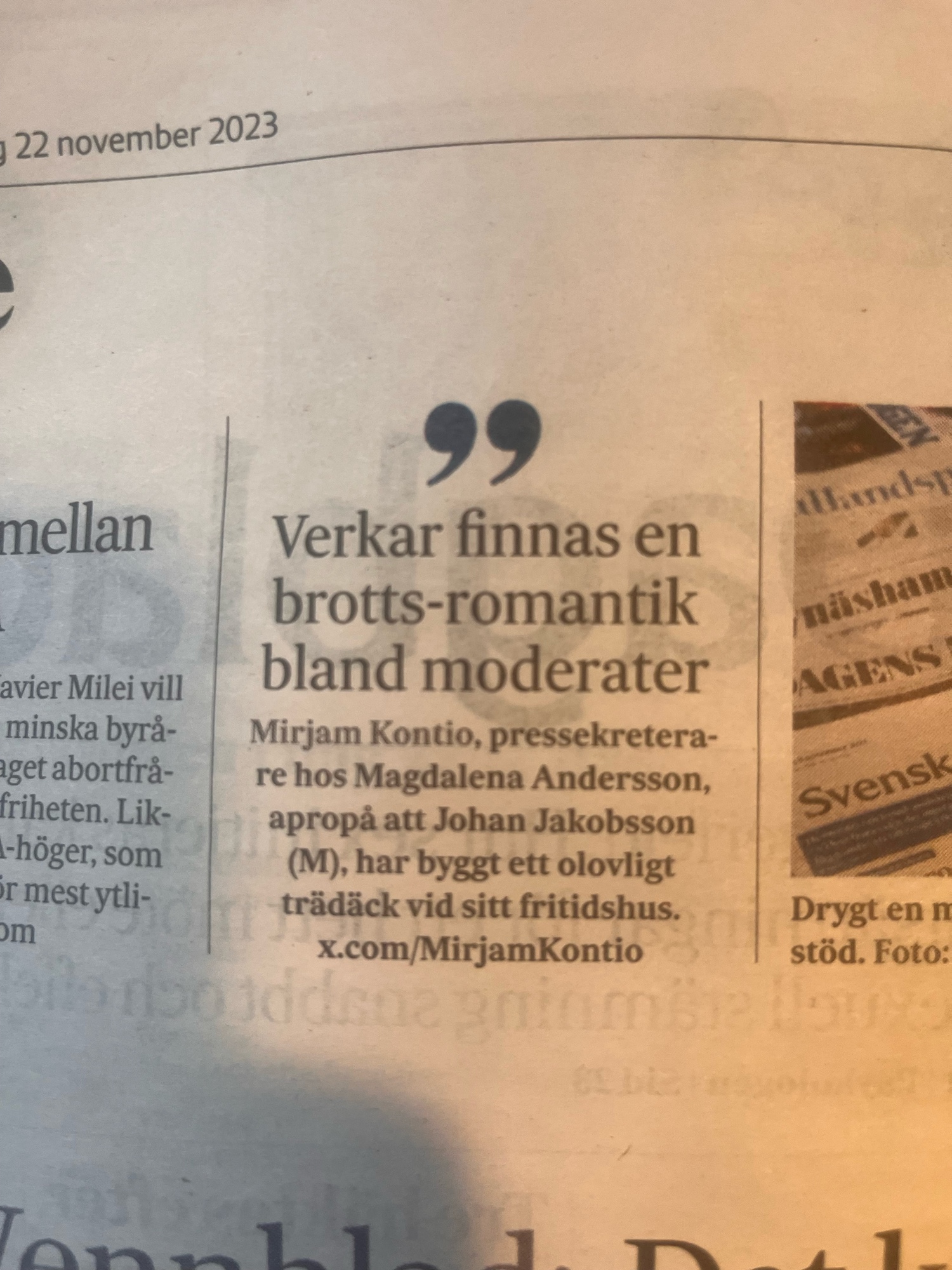 Visa på Mastodon →Kristersson verkar ha lite otur i valet av statssekreterare. De verkar minst sagt lite slarviga med att följa lagar. Först gällde det ålfiske och nu bygga trädäck utan tillstånd. Oseriöst! Uppgifter: Statssekreterare Johan Jakobsson utreds för fler brott https://www.aftonbladet.se/nyheter/a/bglaP5/uppgifter-statssekreterare-johan-jakobsson-utreds-for-fler-brott