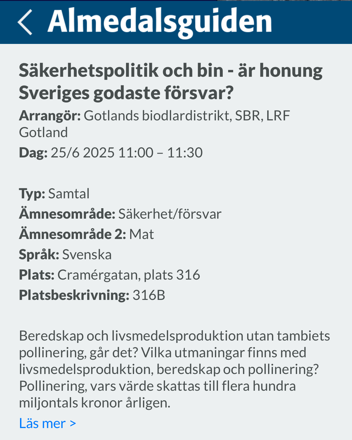 Jag har en mening i ett av mina standard-anföranden i riksdagen som säger ”varje litet bi är en del av totalförsvaret”. Kul att se att detta också diskuteras i #Almedalen!