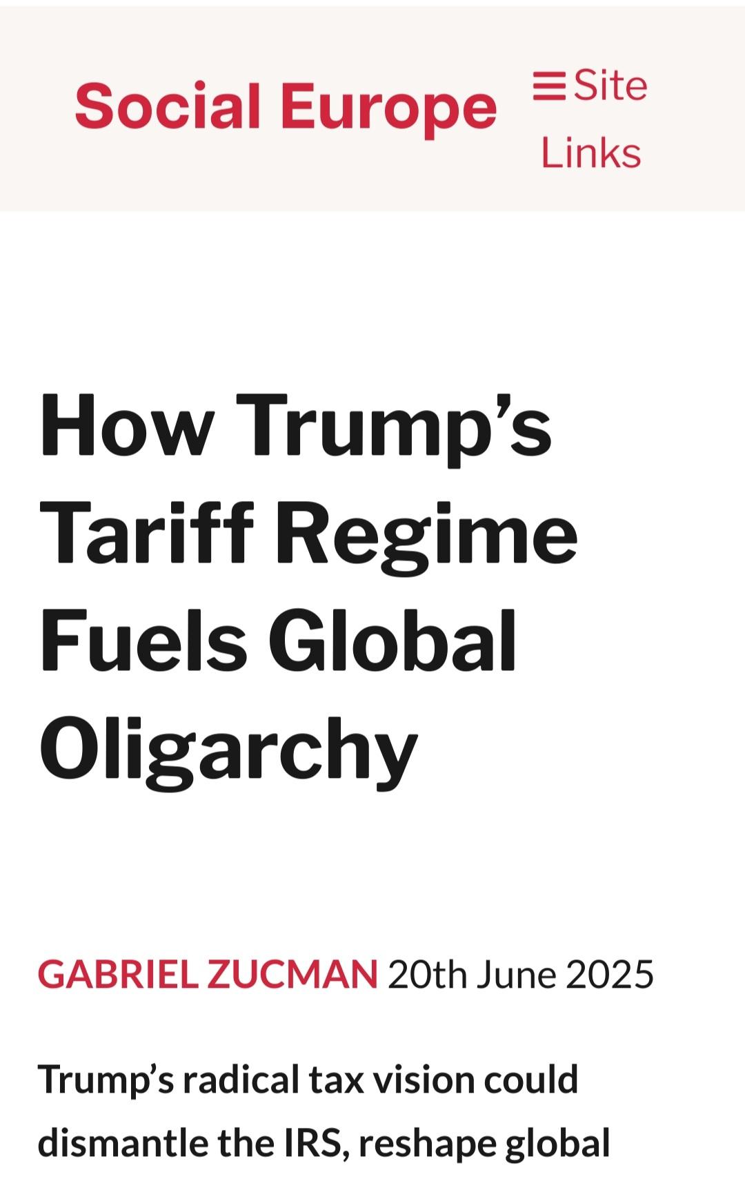 Lästips för alla som önskar tänka om en bättre värld. 🌹 https://www.socialeurope.eu/how-trumps-tariff-regime-fuels-global-oligarchy