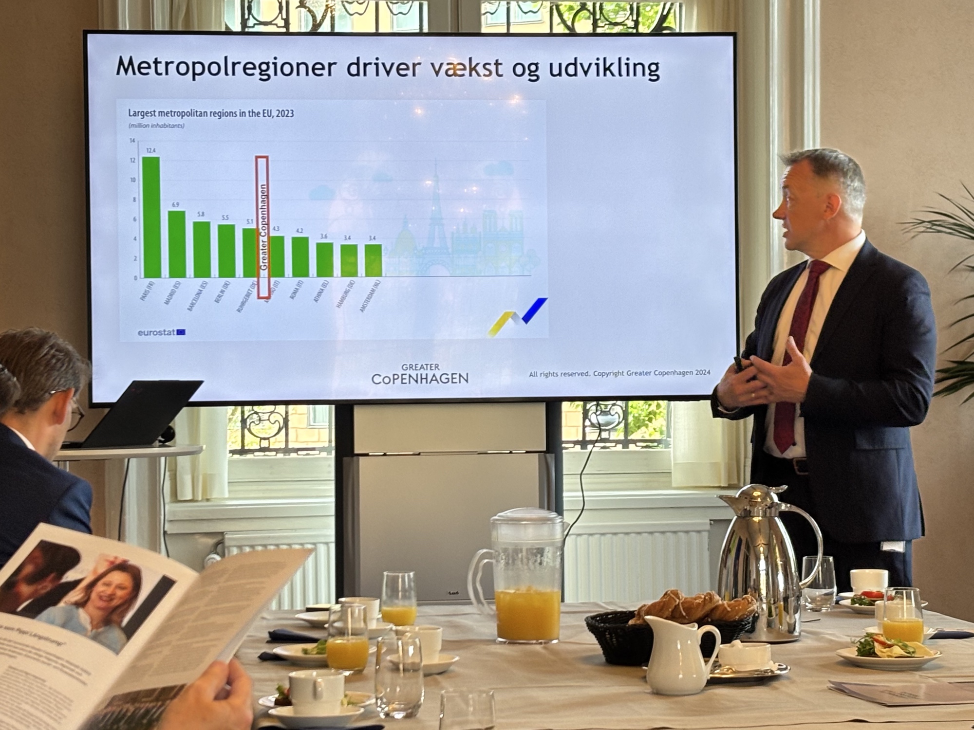 Köpenhamn och Öresund i riksdagen denna morgon. Öresundsregionen (med 4,2 miljoner invånare) kan matcha de stora städerna i Europa i storlek, om man räknar hela regionen.