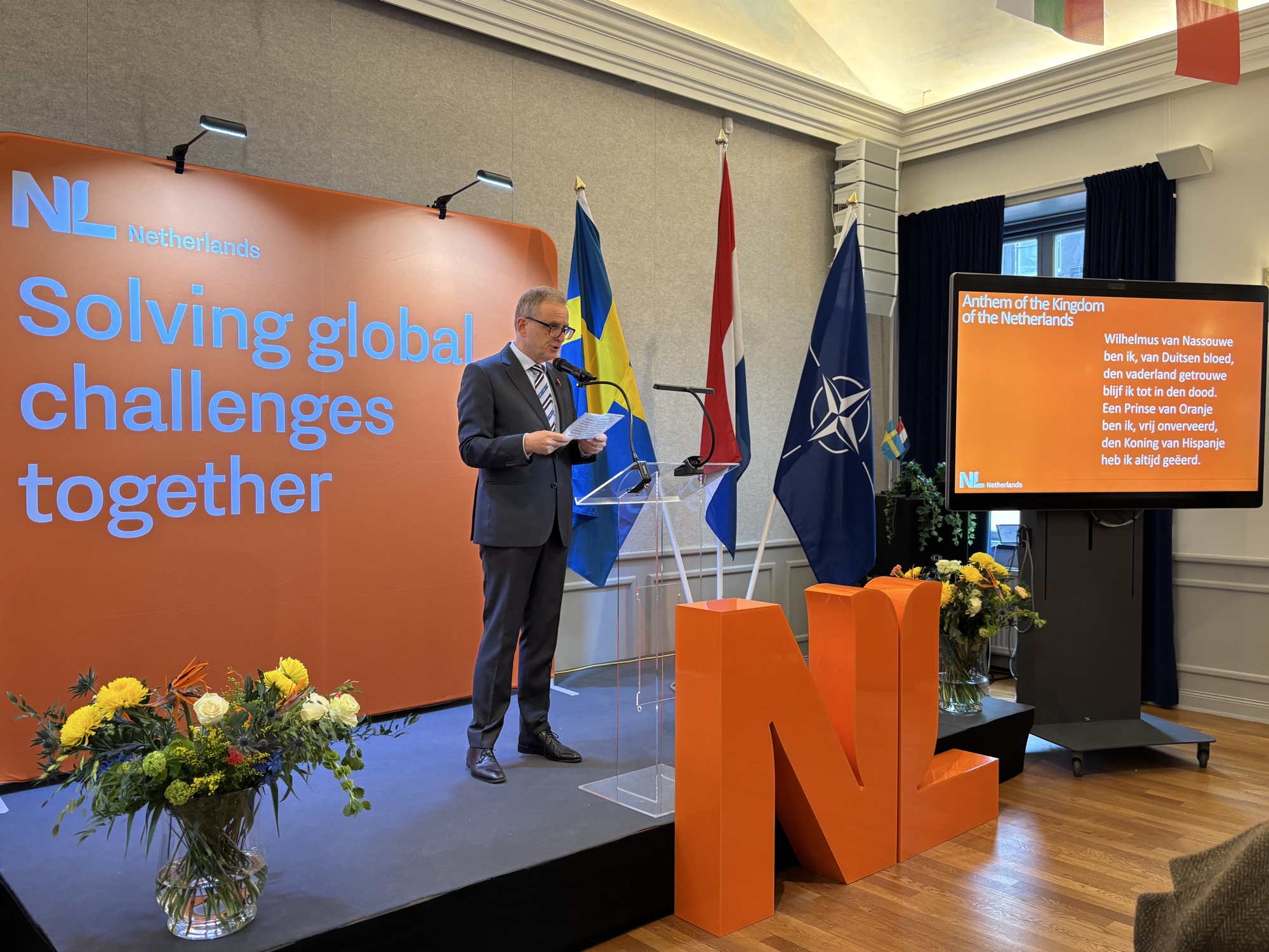 Visa på Bluesky →Nato, kungaskål, tulpaner och ost på Nederländernas ambassad. För och emot. Det jämnar ut sig i slutändan tänker jag. Många trevliga samtal!