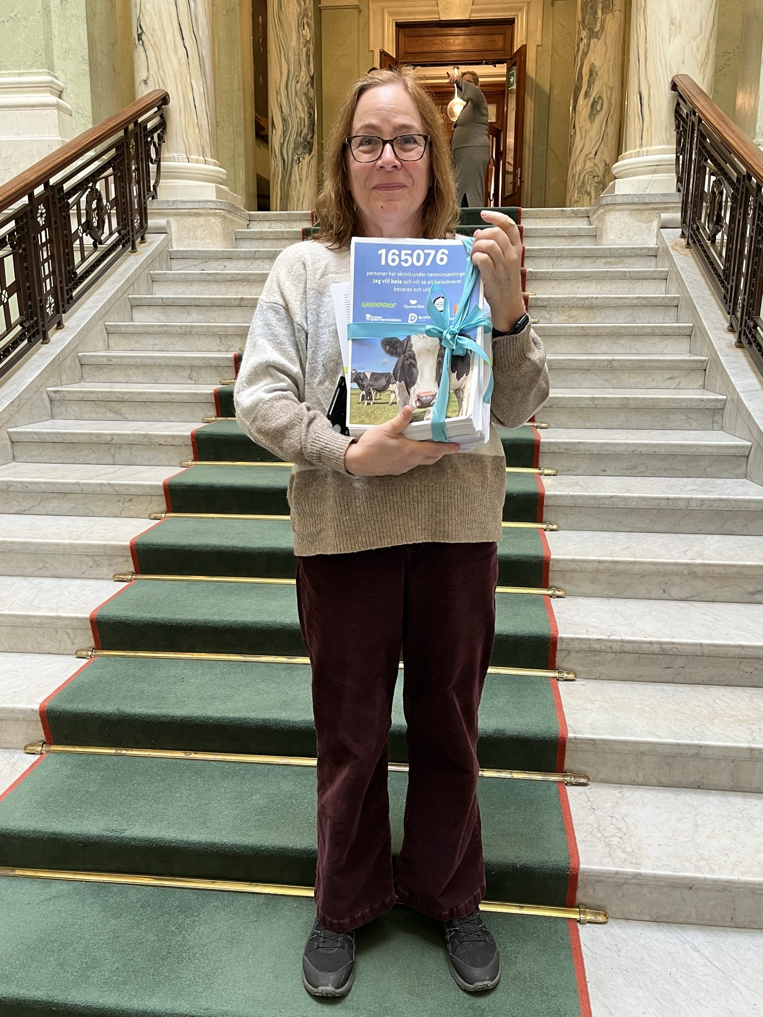 Visa på Bluesky →BEHÅLL KORNAS BETESRÄTT! Inte bara korna utan även 168 000 engagerade personer vill behålla kornas betesrätt. Deras namnunderskrifter lämnades idag över till riksdagen. Regeringen borde dra tillbaka sitt förslag att slopa betesrätten.