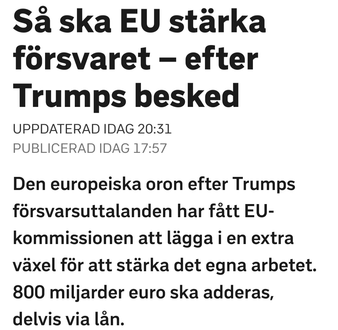 Sveriges Radio: Enat EU säger ja till upprustning https://www.sverigesradio.se/artikel/8901327