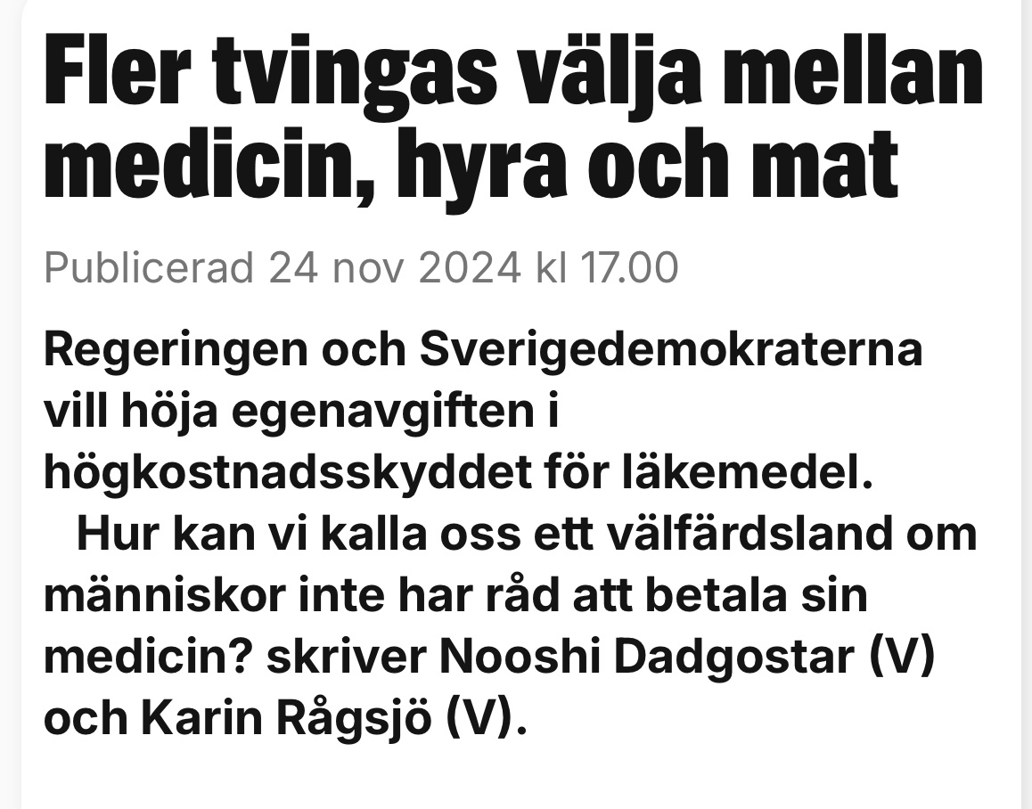 Och det samtidigt som de vill höja egenavgiften i högkostnadsskyddet för läkemedel.