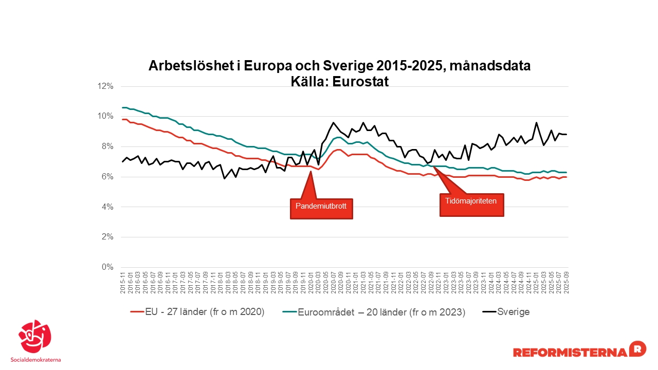 Visa på Bluesky →Sänkta skatter för välbeställda, marknadiserad arbetsmarknadspolitik, ej värdesäkrade statsbidrag till kommuner och regioner, urholkat barnbidrag, borttagna investeringsstöd för byggande har inte varit effektivt för att bekämpa arbetslöshet. Det kommer försämrad a-kassa inte heller att vara.