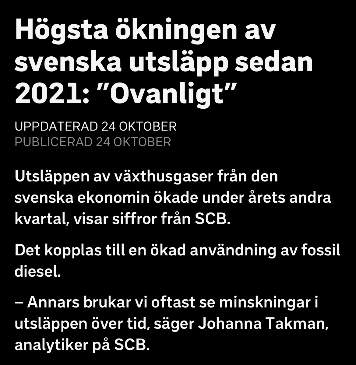 Visa på Bluesky →Vi har alltså en klimat- och miljöministern som gör reklam för oljelobbyn. Inte så konstigt att regeringen (och SD) ökat utsläppen av fossila utsläpp kraftigt sen de kom till makten efter valet.