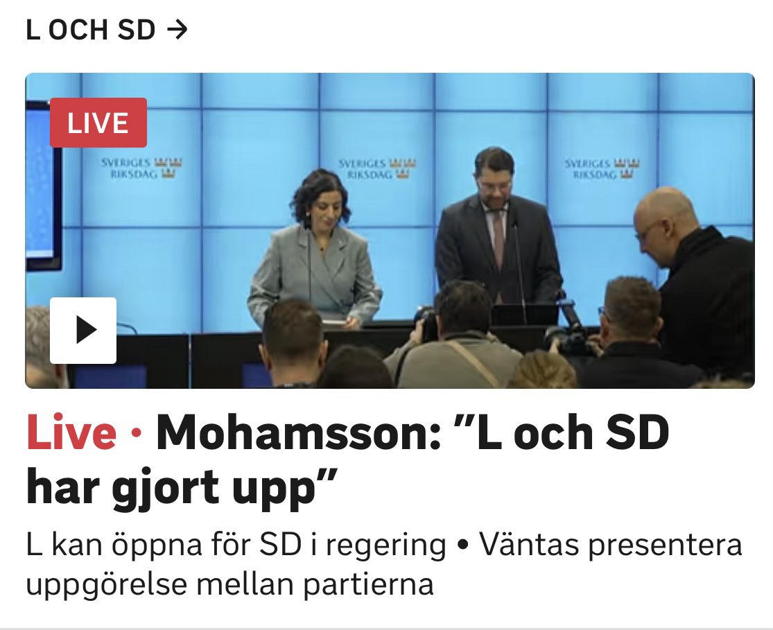 Visa på Bluesky →”Problemet är SD som del av en nationalistisk, auktoritär kraft som växer i västvärlden. Jag har noterat en kollektivisering och avhumanisering av människor som grupper och är orolig för att den typen av värderingar stärks om SD sitter i regering”, säger han. https://www.dn.se/sverige/l-toppen-jan-jonsson-lamnar-politiken/