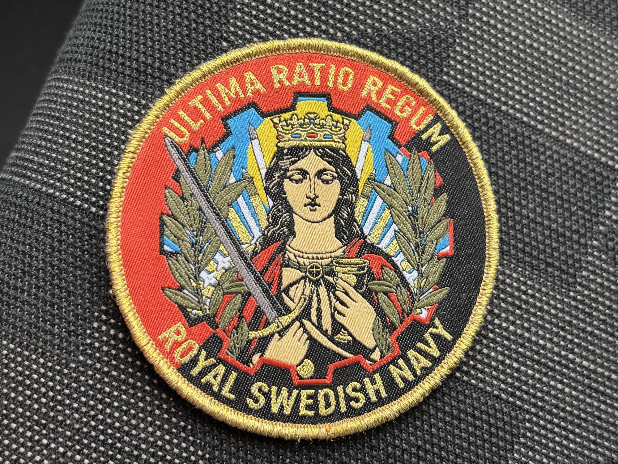 Visa på Bluesky →Fick detta fina märke under mitt besök på Berga i förrgår, tack! St Barbara, ansvarig för allt som exploderar och dundrar, även i marinen.
