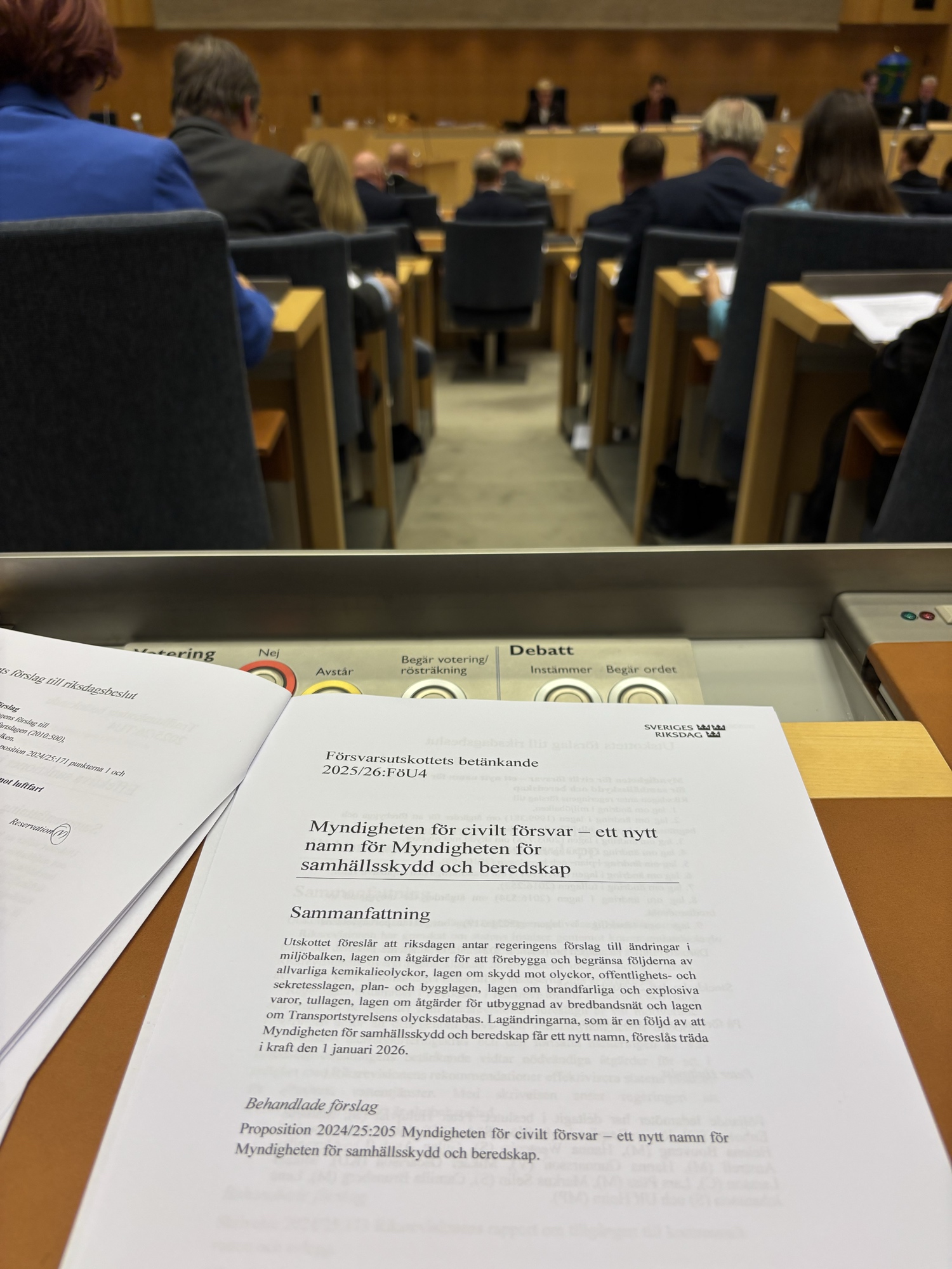 Visa på Bluesky →Riksdagen har nu beslutat slutgiltigt om namnbyte på MSB till Myndigheten för civilt försvar! Enig riksdag, ingen debatt.