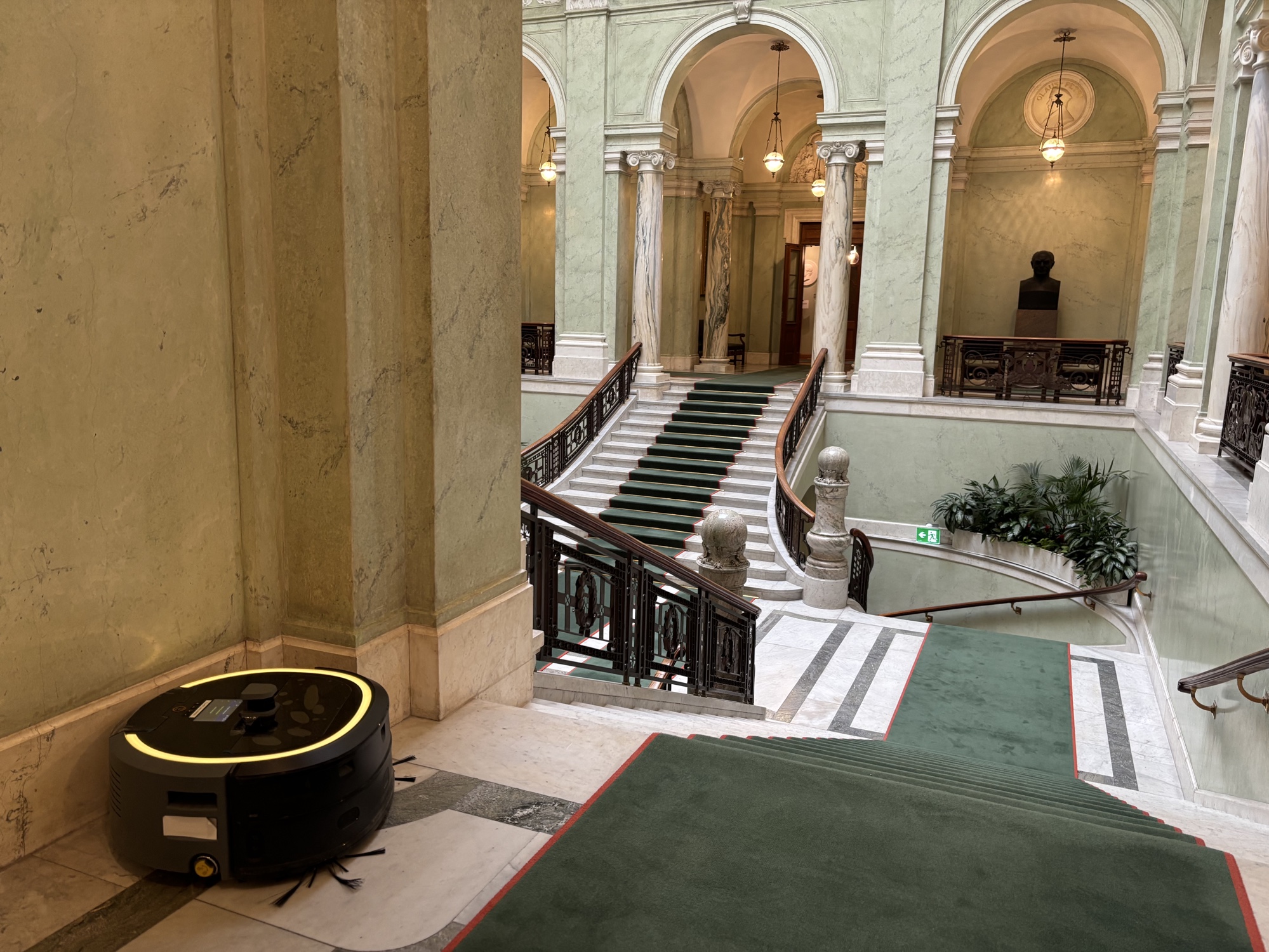 Visa på Bluesky →Riksdagen har fått en robotdammsugare! Det finns många mattor i riksdagens hus och det är ett tungt jobb att dammsuga dessa. Så nu har vi fått en robot. Idag arbetade den i Trapphallen. (Och ja Expressen har såklart rapporterat om detta tidigare https://www.expressen.se/nyheter/sverige/robotdammsugare-for-70-000-ska-stada-i-riksdagen/)